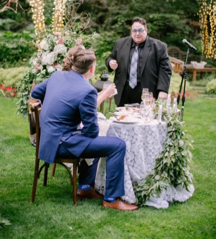 During dinner service, whether you are having a formal sit-down style dinner service or a buffet service, there will be tables of people waiting to eat and tables of people who have already eaten waiting on everyone else to finish. Having Strolling Close-Up Magic going from table to table keeps the guests who are waiting engaged and entertained. No one is sitting around bored waiting for the next event in your Wedding Reception. Your guests are enjoying every moment of Dinner Service and feeling connected, feeling that they are truly a part of the Celebration!